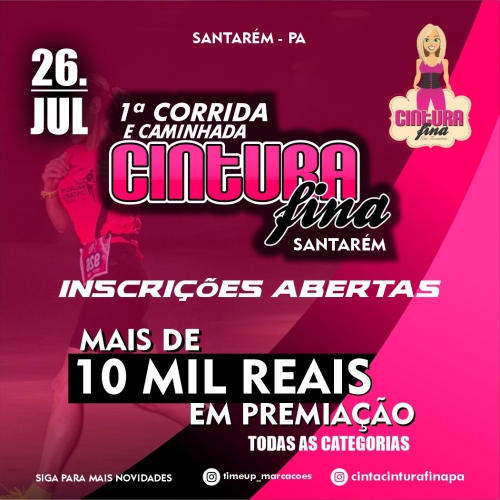 A 1ª CORRIDA E CAMINHADA CINTURA FINA SANTARÉM é uma realização da Loja Cintura Fina, com organização da TIME UP MARCAÇÕES.