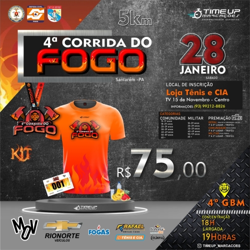 INSCRIÇÃO Corrida: R$ 75,00 + taxas site |